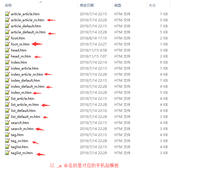 9、电脑站模板文件和手机站模板文件还是按原来的命名
