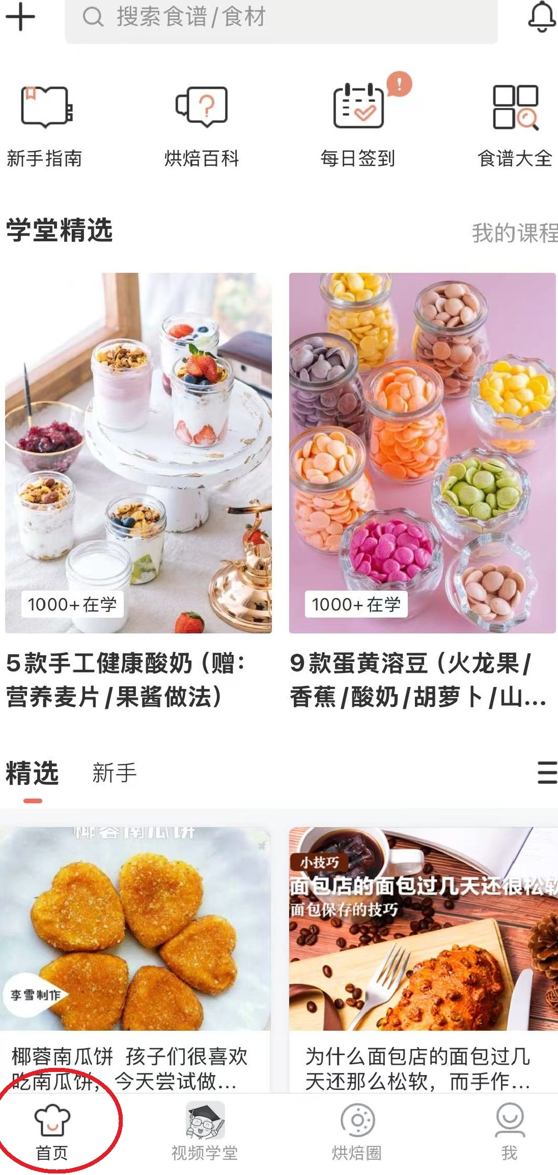 进入“首页”,点击“新手指南”了解烘焙基础。