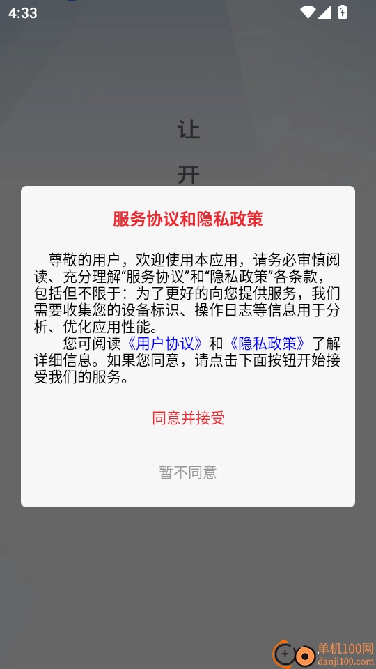 首先打开软件,阅读协议与隐私政策后,点击“同意并接受”按钮即可进入。