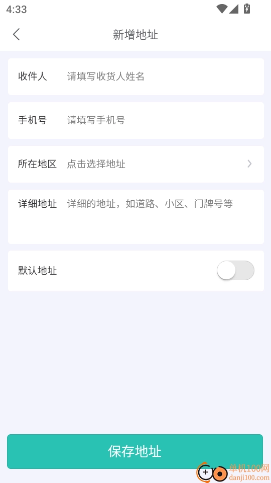在依次填写收件人姓名、手机号码、所在地区以及详细地址后,点击“保存地址”按钮,即可完成整个操作流程。