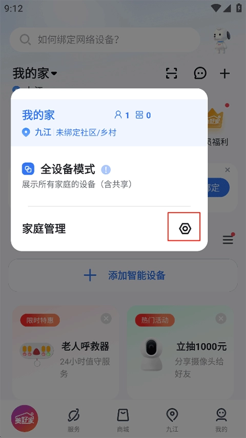 打开小翼管家,在首页点击我的家;