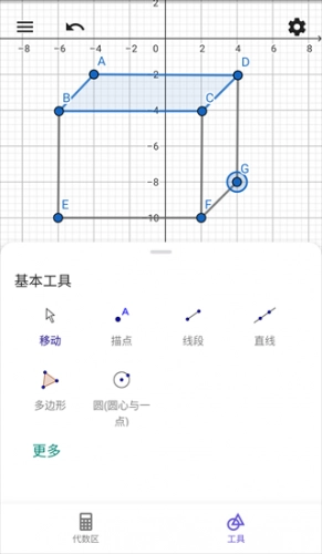 配备了多样化的绘图工具,涵盖点、直线、圆、多边形等类型,能够帮助用户迅速搭建出各式各样的几何图形。
