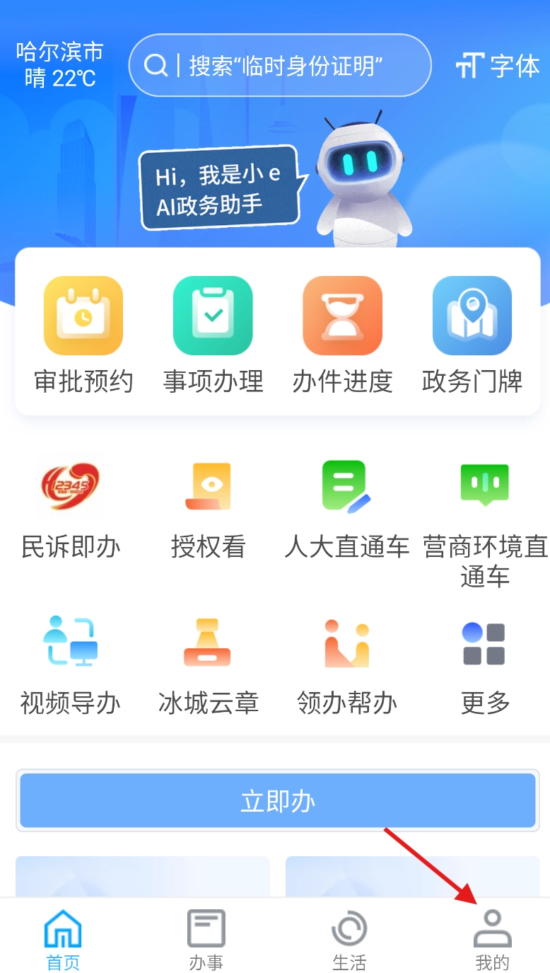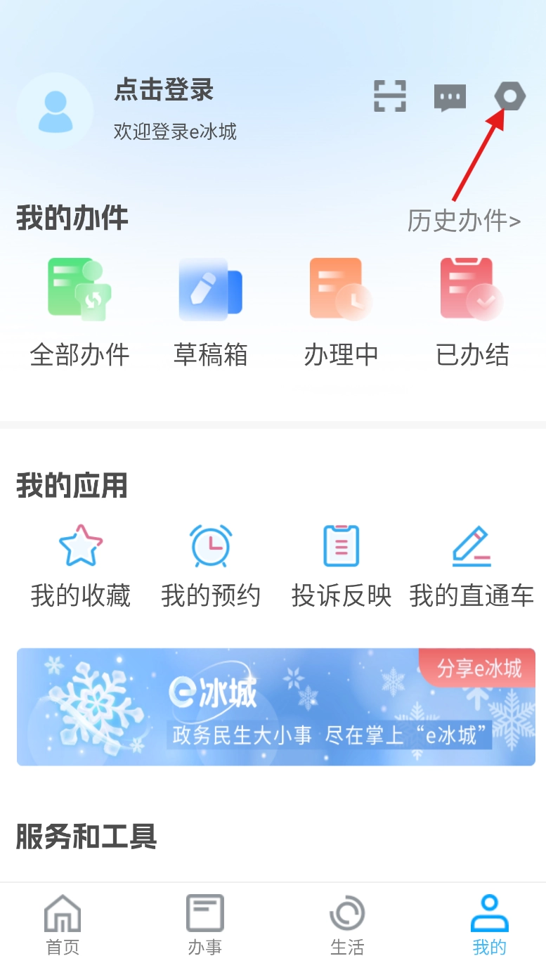 打开e冰城APP进入首页后,找到界面右下角的“我的”选项,轻点该选项即可进入个人专属页面。