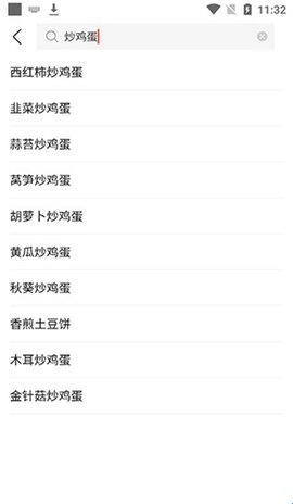 系统会根据热度推荐所有相关的“炒鸡蛋”菜谱。