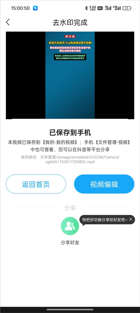 另外,用户也能够在编辑页面再次对视频进行剪辑和美化操作,之后再将其导出保存。