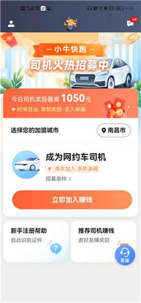 进入软件首页,点击立即加入赚钱可以注册成为司机。