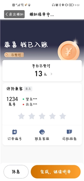 用户还口可以进入我的点击模拟接单,体验手机接单。