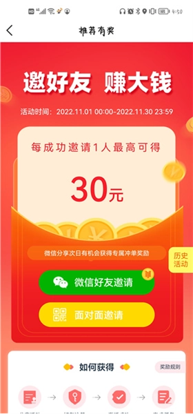 用户还可以邀请好友加入该平台,领取现金红包。