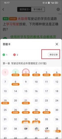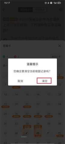 此时会弹出一个提示框,显示“您确定要清空当前做题记录吗?”,点击“清空”按钮即可完成确认操作。