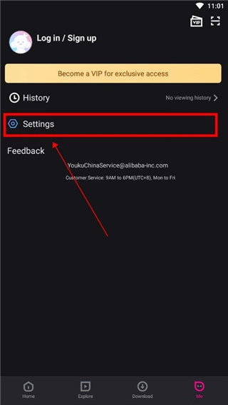安装好优酷视频国际版后,点击进入应用,然后选择界面下方的【Me】选项。