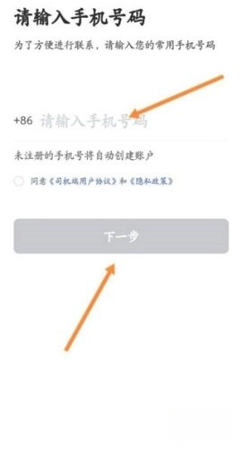 进入星徽出行App登录界面,输入手机号码。