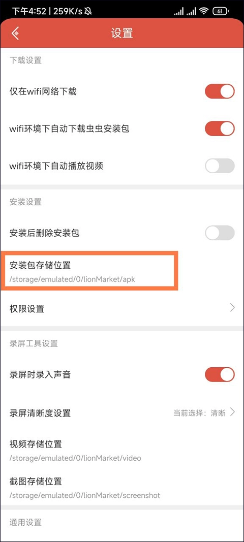 在设置界面能够看到我们游戏安装包在手机里的具体存放位置,我们把这个位置记录下来。