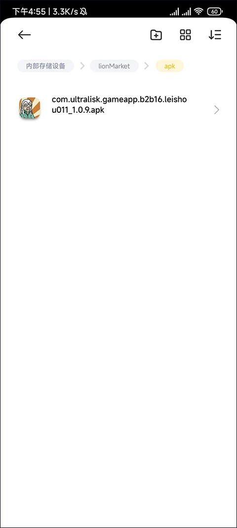最后只需通过手机的文件管理找到这个具体位置,就能找到我们的安装包了;有了安装包,我们就可以把游戏存到手机里了。