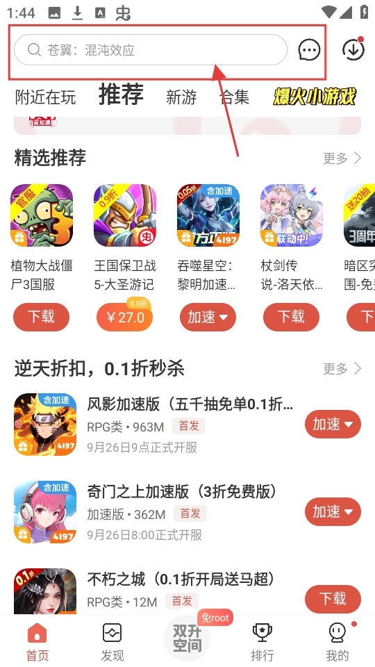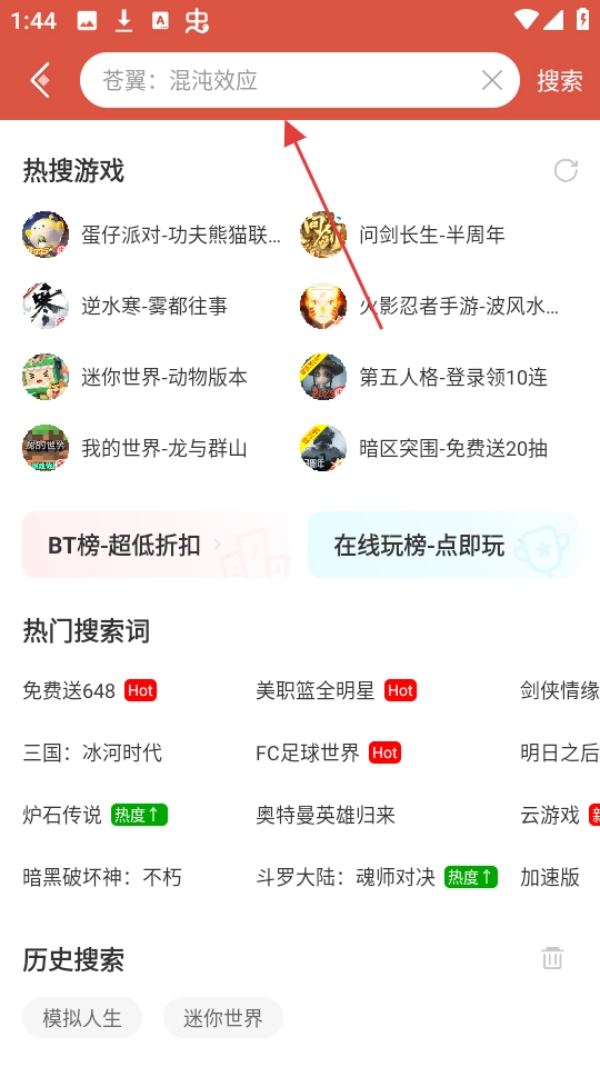 在软件的首页,点击顶部位置的搜索框,就可以输入你想要查找的游戏名称。