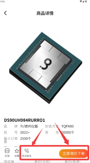 选定商品进入详情页后,可通过电话联系或立即询价的方式完成采购。