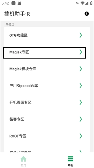 获取Root权限后,您就能使用搞机助手·R的所有功能,比如在【Magisk专区】里,您可以进入该专区开展相关操作。