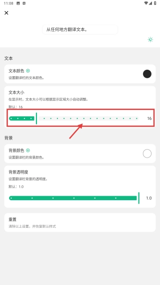 在设置界面的文本大小调节区域,拖动滑块将文本大小调整到合适的数值。