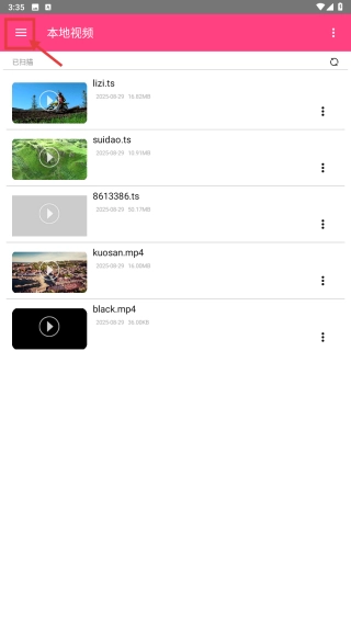 打开视频播放应用,点击左上角的菜单按钮,展开功能列表。