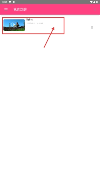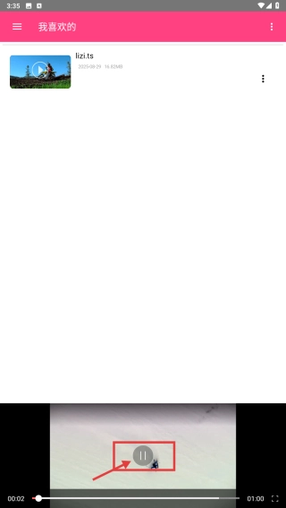 在收藏视频页面,点击lzzl.ts这个视频条目,就能进入视频播放界面。