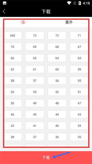 4、在章节选择页面,选定目标章节后,点击底部的按钮,即可完成对应漫画章节的操作。