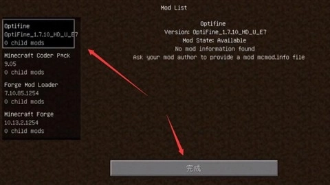 最后使用HMCL启动器进入游戏,就可以点击“Mods”按钮查看已安装的MOD列表。