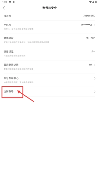 在账号与安全页面,点击注销账号选项,按照提示完成账号注销的相关操作。