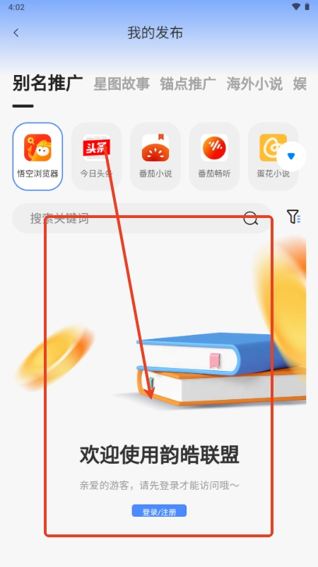 韵皓联盟是一款专门用于小说推文的软件,我们拥有丰富多样的小说资源,能让您尽情推广各类题材的小说。