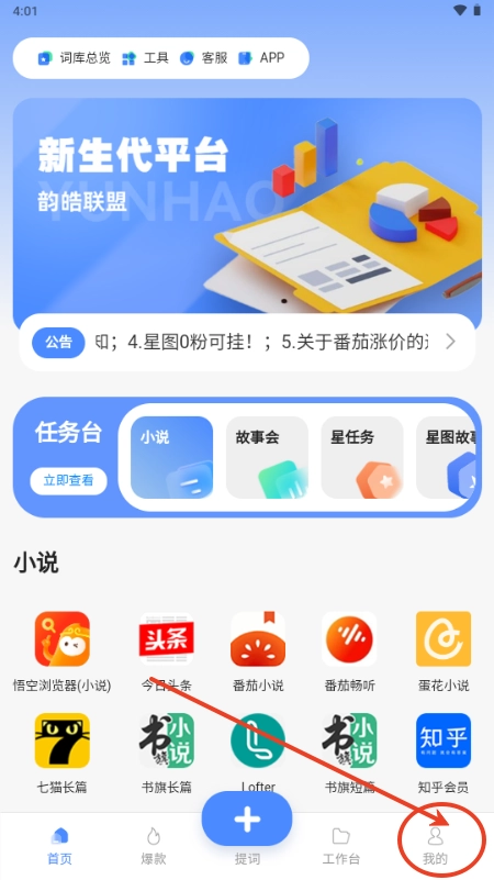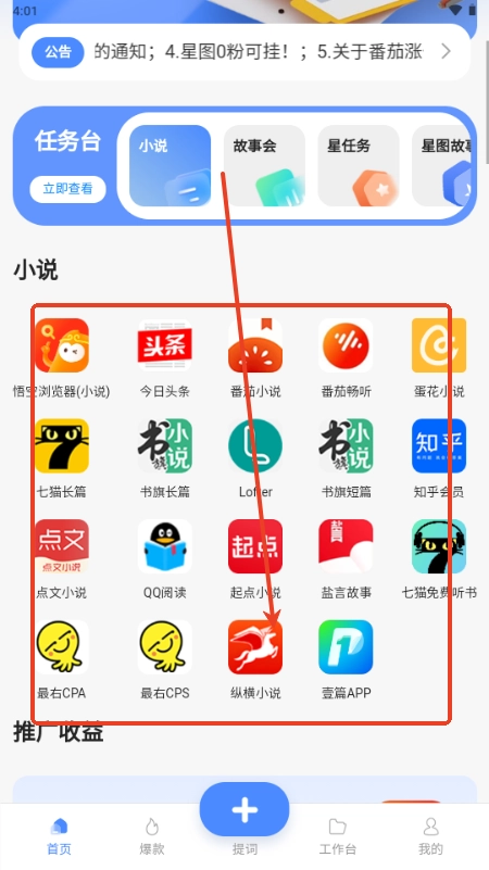 提供小说推文任务获取功能,丰富推广内容