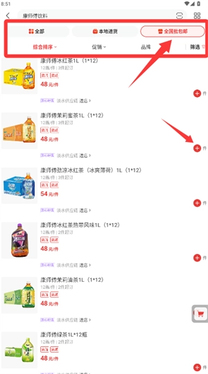 进入分类页面后,能够筛选全国包邮之类的条件,进而浏览并挑选心仪的商品。