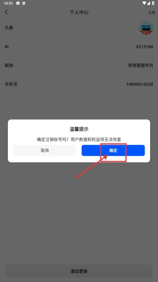 在温馨提示弹窗中,点击确定按钮,即可完成账号注销操作。