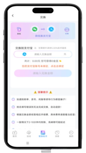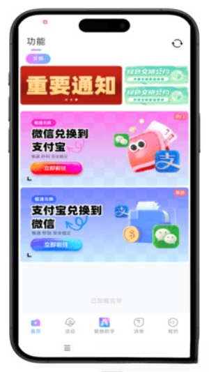 支持微信钱包与支付宝钱包之间的互相转换,仅需输入具体金额即可完成转化操作。