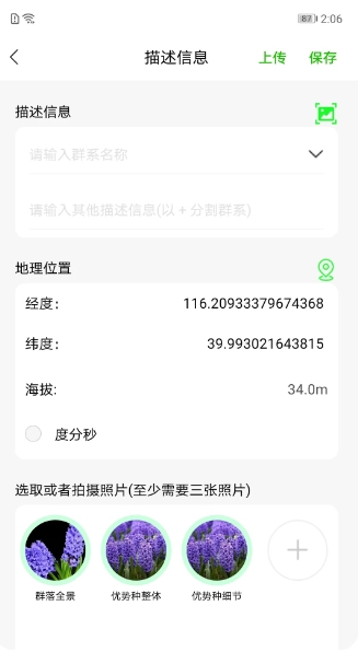 绿途是由北京数字绿土科技股份有限公司开发,中国科学院植物研究所提供数据与理论支持的专业植被分布数据采集软件。该软件设有普通用户拍照记录模式和专家用户打点记录模式:在拍照模式中,用户能够借助软件自带的自动定位功能,于当前GPS位置完成图像数据采集,标注类别后上传至服务端;而在打点模式下,用户可依托软件提供的谷歌影像、1:100万植被图等参考图层,对目视范围内的植被名称进行快速标记并上传。