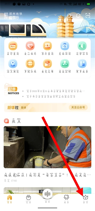 打开郑州地铁,点击底部会员,进入会员页。