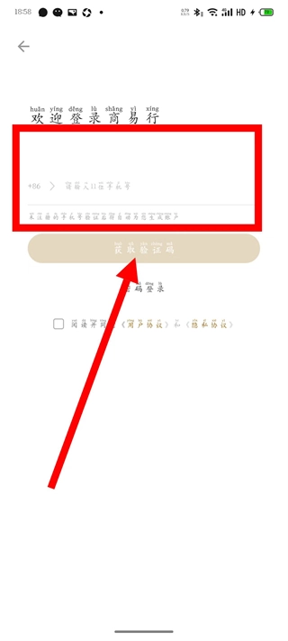 输入手机号,点击获取验证码。