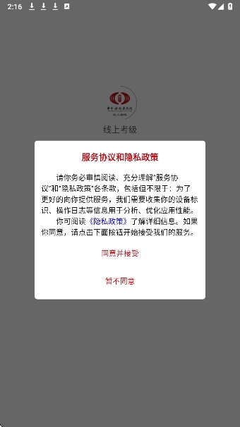 同意用户协议,进入线上考级。