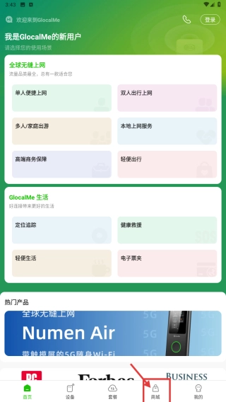 你可以打开全球上网服务应用,接着点击底部的商城选项,这样就能进入商城页面了。