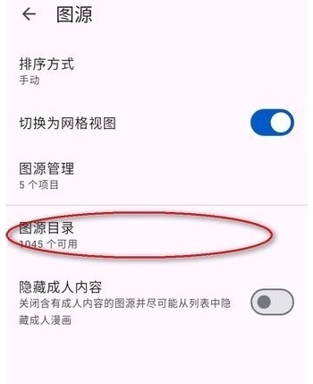 进入设置后,点击“图源”选项,接着选择“图源目录”,具体操作可参照图示。