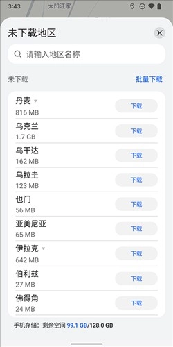 安装好基础数据后,点击下方的“未地区”选项,选择所需的地区地图资源就可以了(需要注意的是,部分国家和地区目前没有离线地图资源)