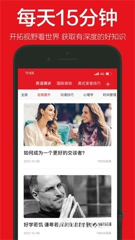 英语演讲能让你在英语学习的道路上更具优势。这里汇集了来自全球的经典演讲片段,内容覆盖自我提升、沟通技巧、心理学、时间管理、健康以及思维方式等多个领域,这款产品堪称你获取深度知识的得力工具。只要每天坚持学习15分钟,再配合智能口语评分系统,就能切实提高你的英语口语和听力水平。你准备好与世界接轨了吗?