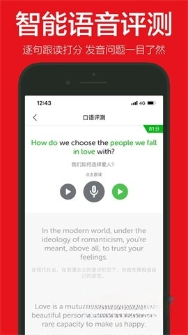 逐句跟读并进行打分,发音方面的问题清晰可见,从此不必再为口语交流而担忧。