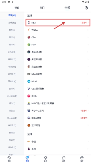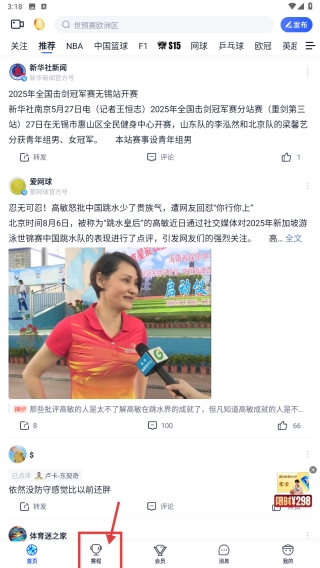 打开体育赛事应用,然后点击底部的赛程选项,这样就能进入赛程页面了。