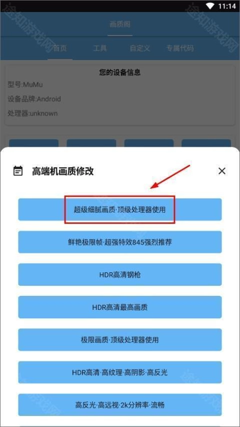 打开软件后,界面会呈现如图所示的状态,用户能够依据自己手机的配置情况来做出选择,例如高端机型。