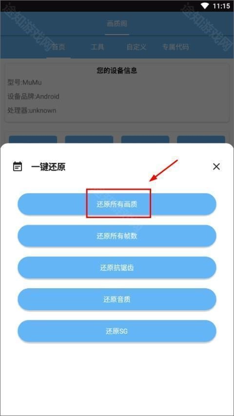 可一键将画质、帧数、抗锯齿、音质等所有设置还原至初始状态。
