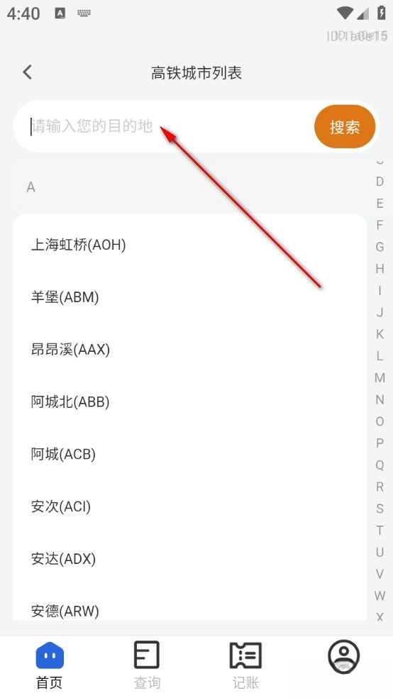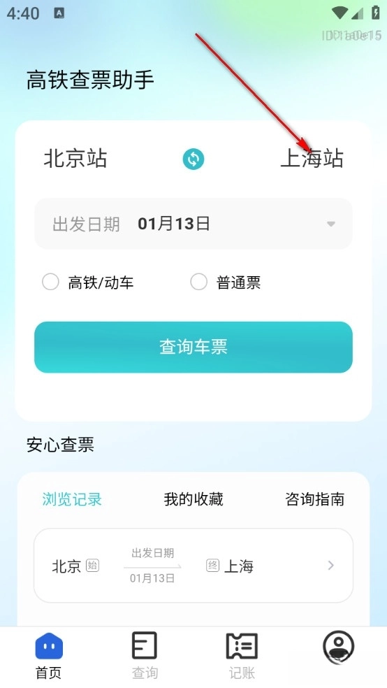 3、然后返回首页点击查询车票