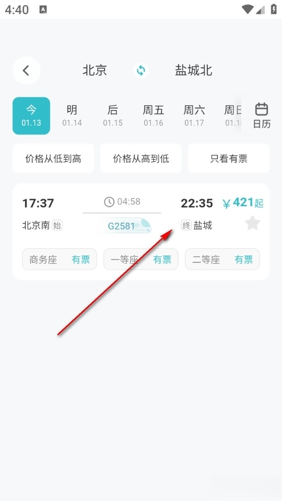 2、用户仅需输入出发地与目的地,就能迅速获取所有满足条件的高铁车次信息。