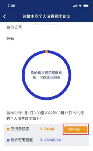 您在实名登录“掌上海关”平台后,通过点击常用应用板块或者个人特色专题里的“跨境电商个人消费信息”选项,就能查询到自己本年度跨境电商的已使用消费额度以及剩余的可用额度。
