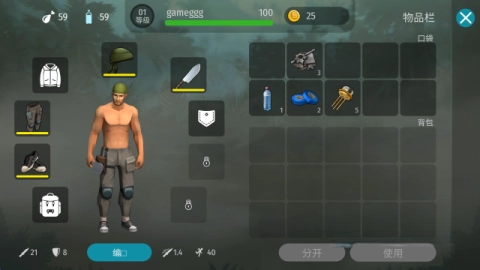 在野外活动时,要尽可能多地搜集周边的各类资源,并且要时常打开背包查看里面的物品,及时把你需要的装备好。