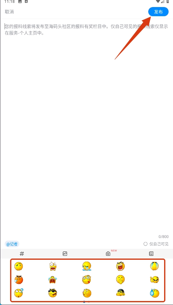 编辑好内容,再添加些表情之类的元素,之后点击右上角的【发布】按钮,就能把你的报料投稿提交上去啦~
