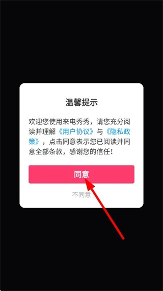 在温馨提示弹窗中,点击同意,进入首页。
