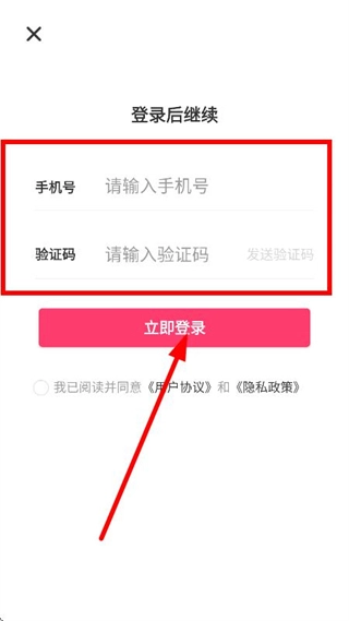 输入手机号码,发送并填写验证码后,点击立即登录按钮,即可完成账号登录流程。